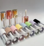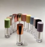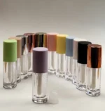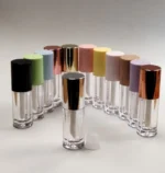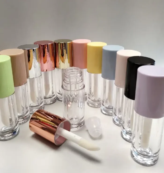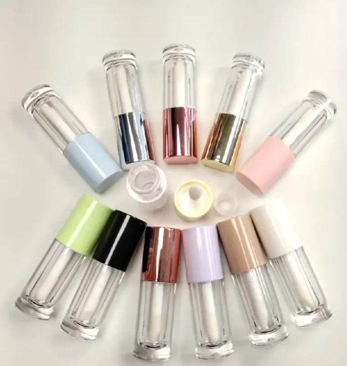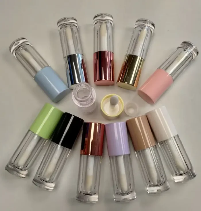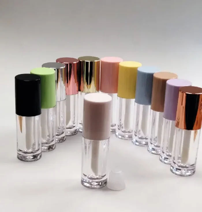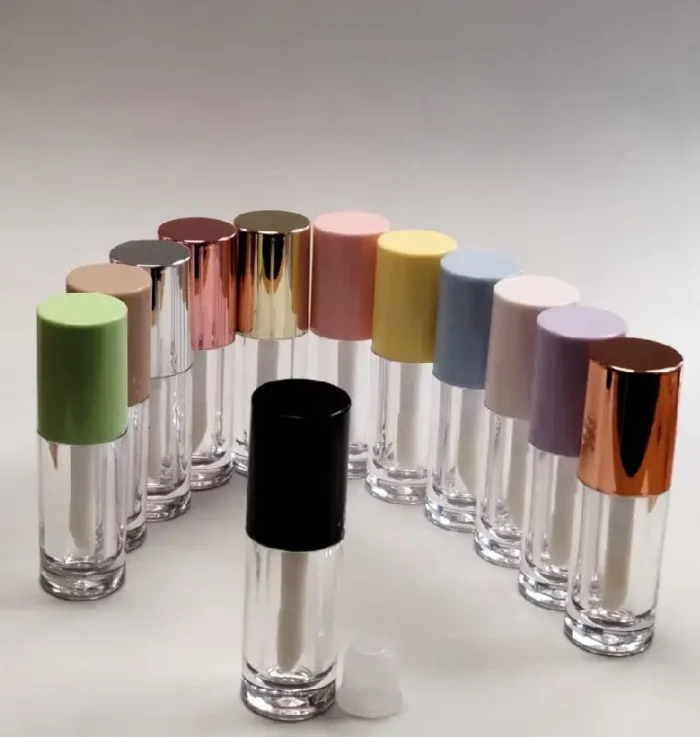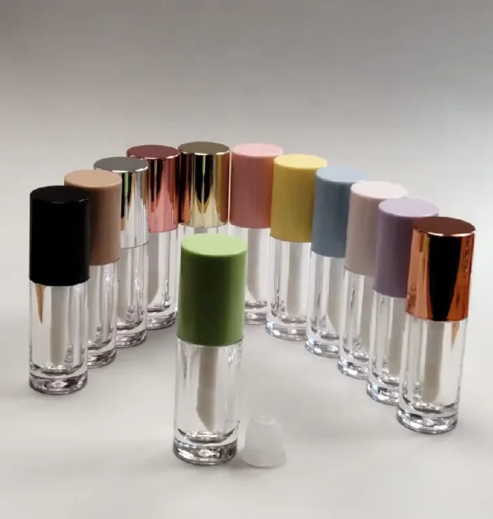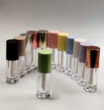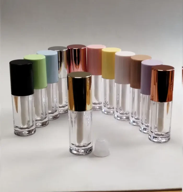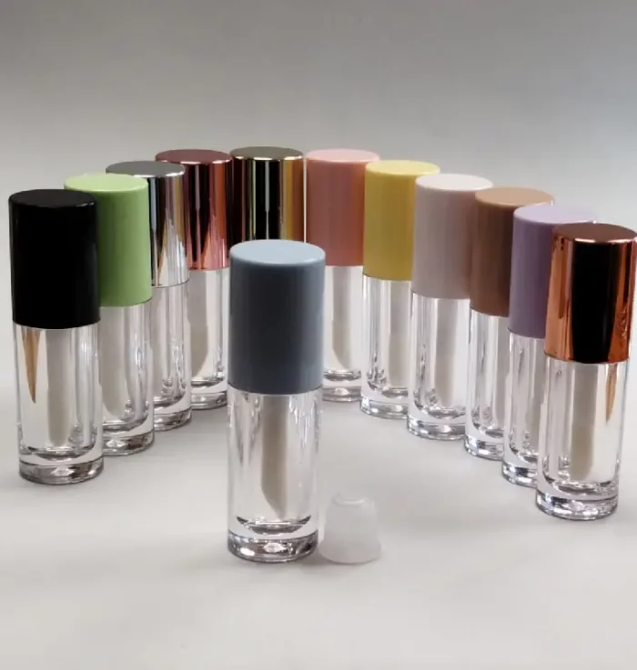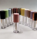 Frasco acrílico transparente con pincel tapa de colores tipo glossy.