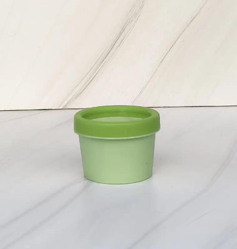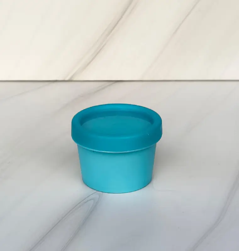 Este pote plástico es rígido, con sello y tapa, es usado en alimentos y también en cosmética, tiene una capacidad de 100 gr de agua.